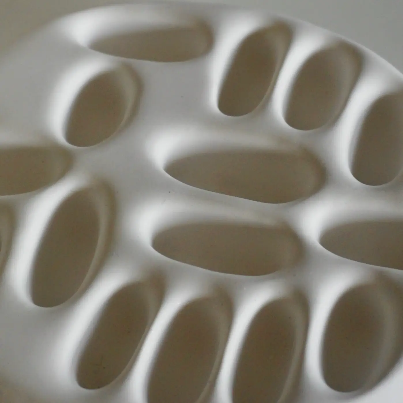 Cette pièce est réalisée à la main dans notre atelier et incarne la finesse du geste artisanal. Son format compact et sa forme délicatement incurvée rappellent une pierre polie par le vent, un galet de plâtre façonné pour épouser la légèreté des bijoux.